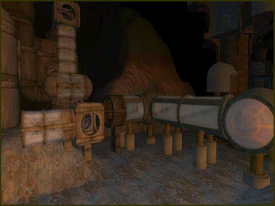Impossible IRLer Tabylin Tenk dropped me a landmark this morning and I set off to explore. On the other side of the teleport was a cyber/steampunk fantasy on a cinematic scale which I now present to you dark roasted, having made use of AM Radio's delightful Nostalgia Windlight preset to record my impressions.